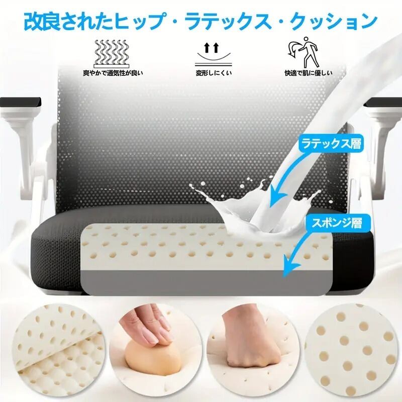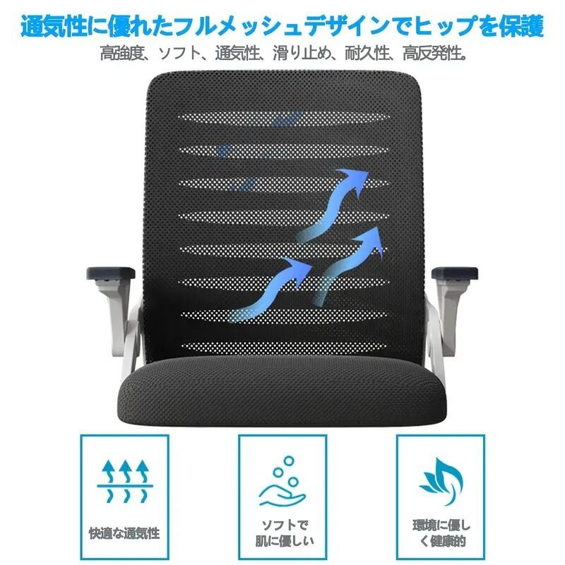 メッシュ素材を使用した背もたれは通気性抜群で、長時間の作業でも快適さを保ちます。