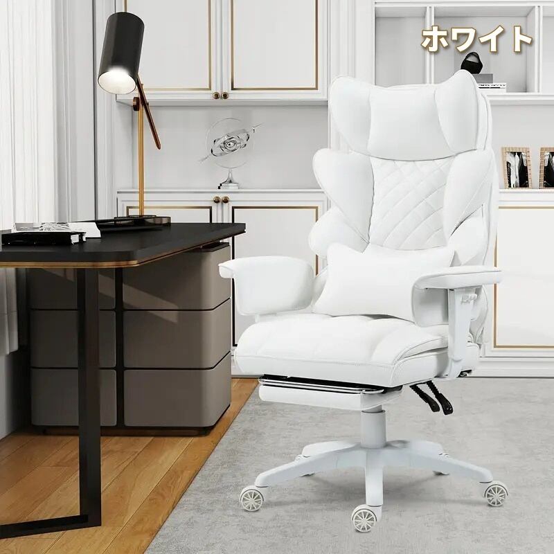 デスクチェア フェイクレザー 肘付き 回転式 キャスター付き かっこいい シンプル 無地 おしゃれ インテリア 北欧 椅子 ゲーミング クッション性 厚手 リクライニング 調節可 ブラック ホワイト グレー ブラウン 合皮