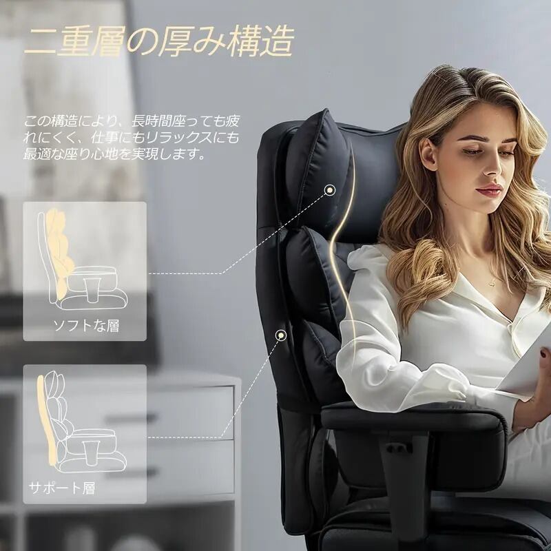 このチェアは、ゲーミングにも最適なクッション性を備えています。