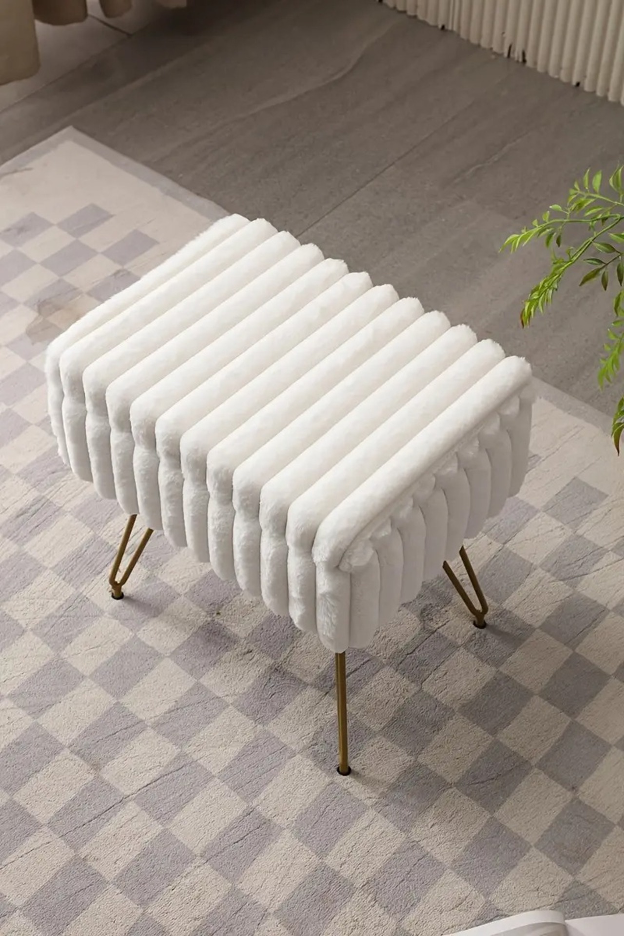 高級感あふれるスタイリッシュなスツールは、ベッドルームやリビングでのメイクアップやフットレストとして多機能に活躍。