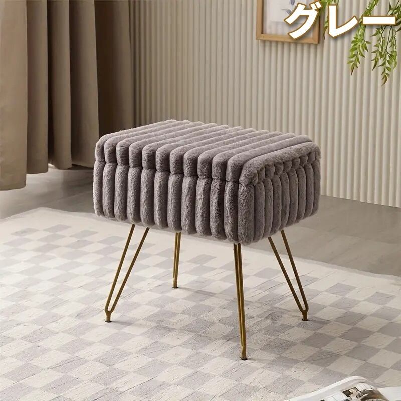 スツール フェイクファー ヴァニティチェア 収納付き オットマン おしゃれ シンプル モダン 高級感 スタイリッシュ インテリア 北欧 メイクアップ フットレスト ベッドルーム リビング 多機能 ホワイト ピンク ブラウン グレー 41×31×43.5cm | Calm+(カームプラス) - 北欧風ナチュラルインテリア・モダン家具専門店