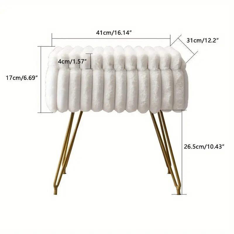 ふわふわのフェイクファーがあなたの空間を優雅に彩る、収納付きヴァニティチェア。