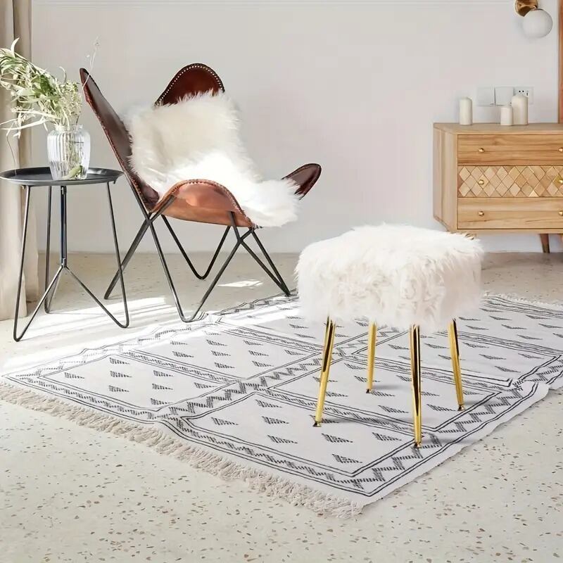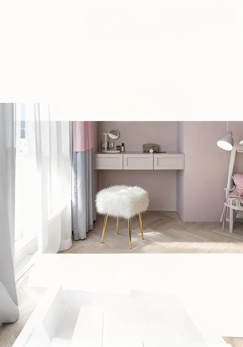 ふわふわのフェイクファーで包まれたスツールが、あなたの空間に優雅なひとときをもたらします。
