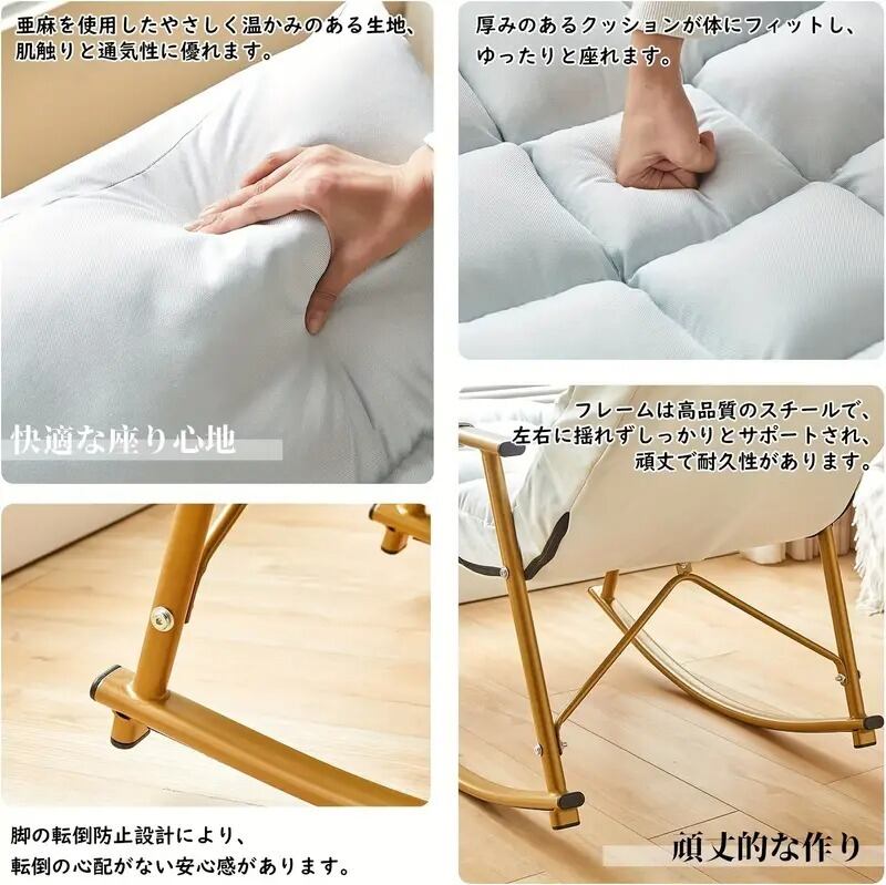 ヴィンテージ風のロッキングチェアとしても楽しめるこの一脚は、リビングやカフェスペースに高級感を添える逸品。