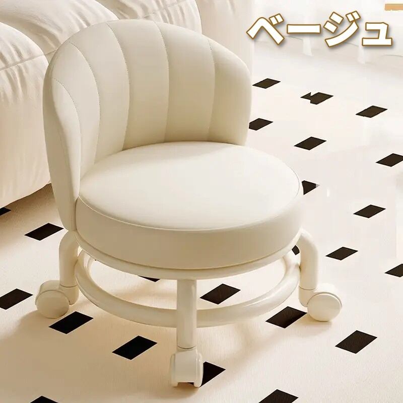 ダイニングチェア 360°キャスター付き ラウンドローラースツール フェイクレザー おしゃれ シンプル モダン スタイリッシュ ミニマル インテリア 北欧 バックレスト付き オフィス リビング 新生活 ベージュ グレー 31×25×39cm | Calm+(カームプラス) - 北欧風ナチュラルインテリア・モダン家具専門店