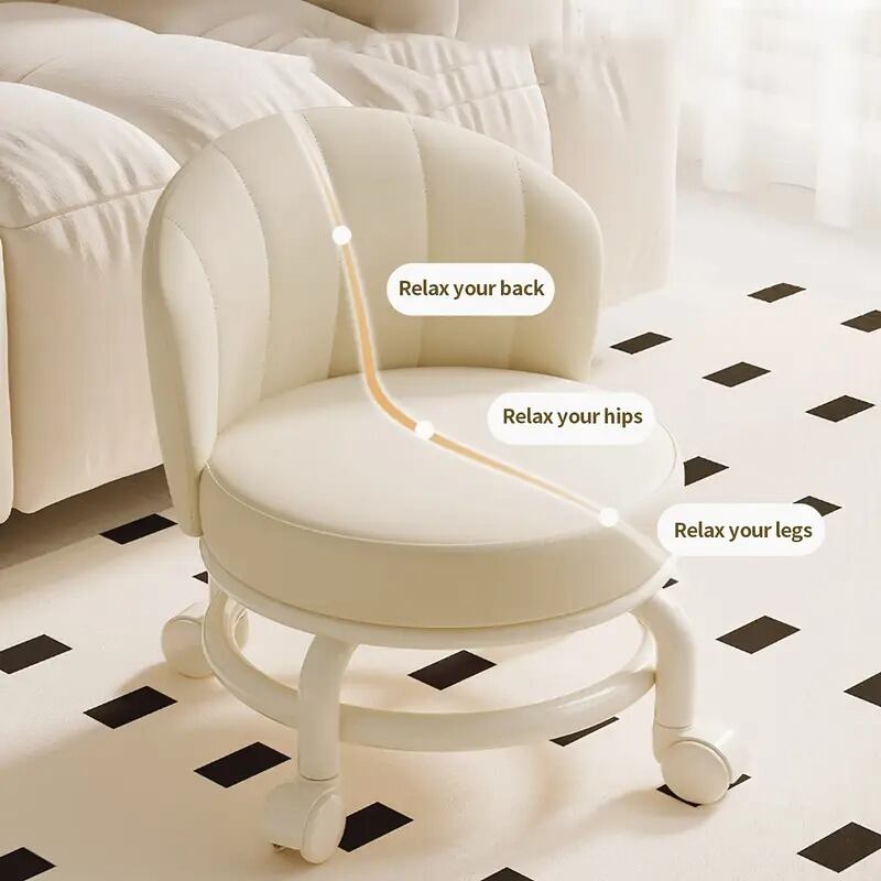 このラウンドローラースツールは、フェイクレザーの洗練されたデザインで、どんなインテリアにも自然に溶け込みます。
