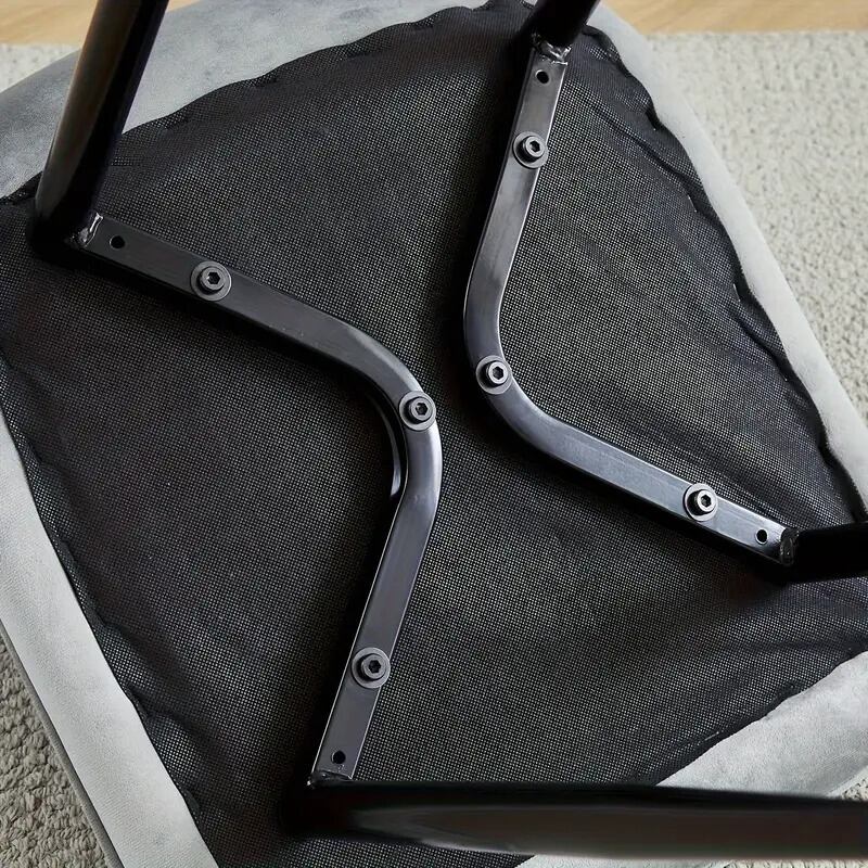 金属と布の絶妙な組み合わせが、モダンな雰囲気を引き立てるサイドチェア。
