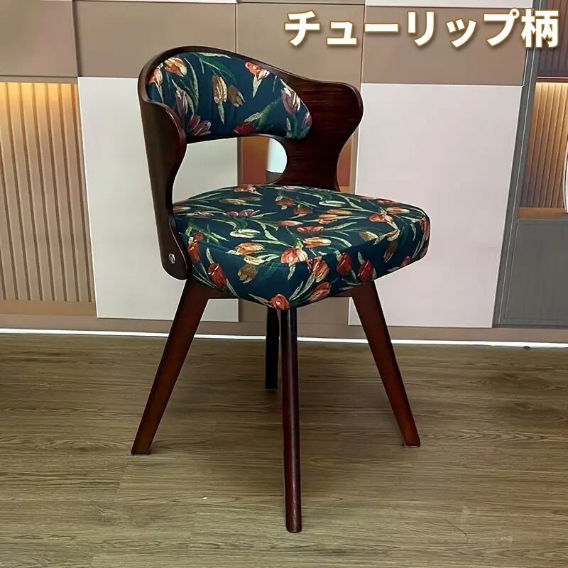 ダイニングチェア 回転式 ノルディック風 学習チェア おしゃれ シンプル ナチュラル スタイリッシュ レトロ クラシック インテリア 北欧 オフィス デスク レストラン グレー ブラウン アイボリー グリーン ブルー 花 チューリップ 43×40×74cm | Calm+(カームプラス) - 北欧風ナチュラルインテリア・モダン家具専門店