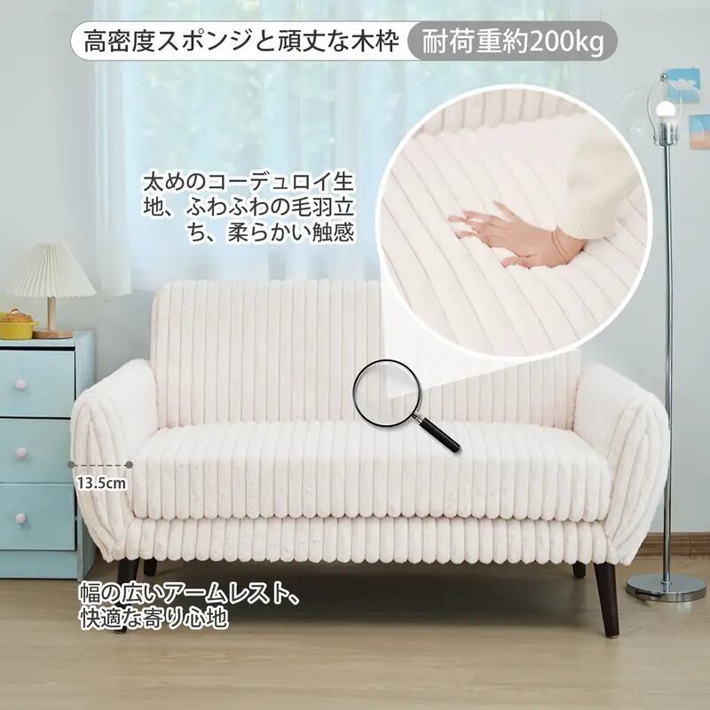 サイズは144.5×53.5×85.5cmで、ゆったりとした座り心地を提供します。