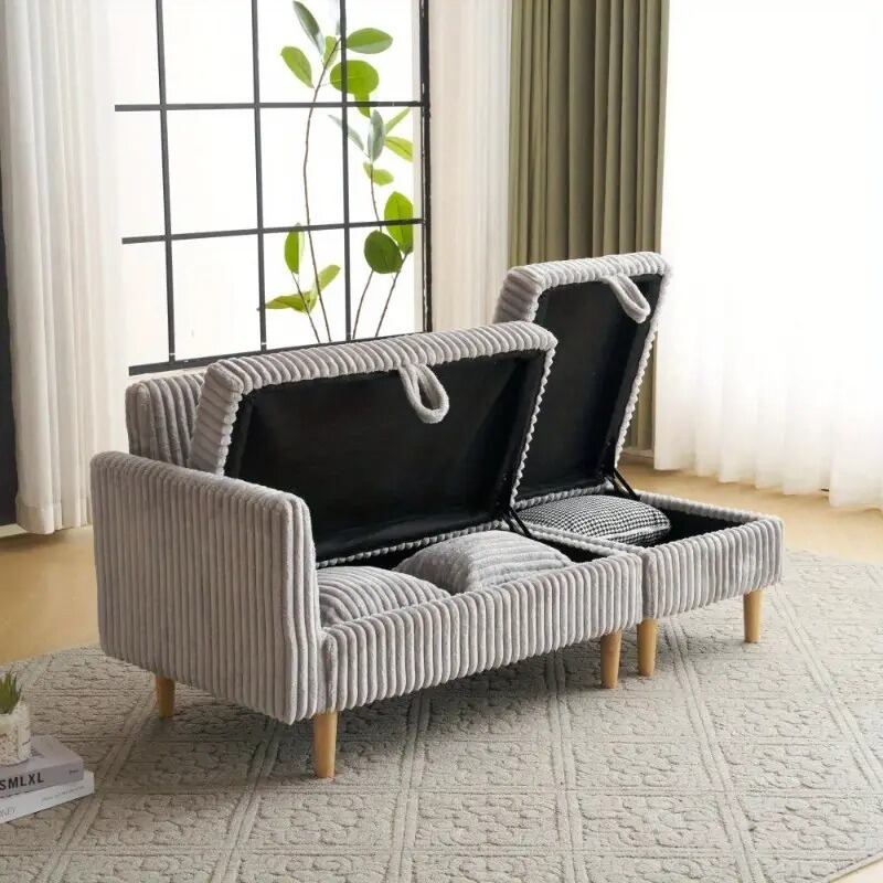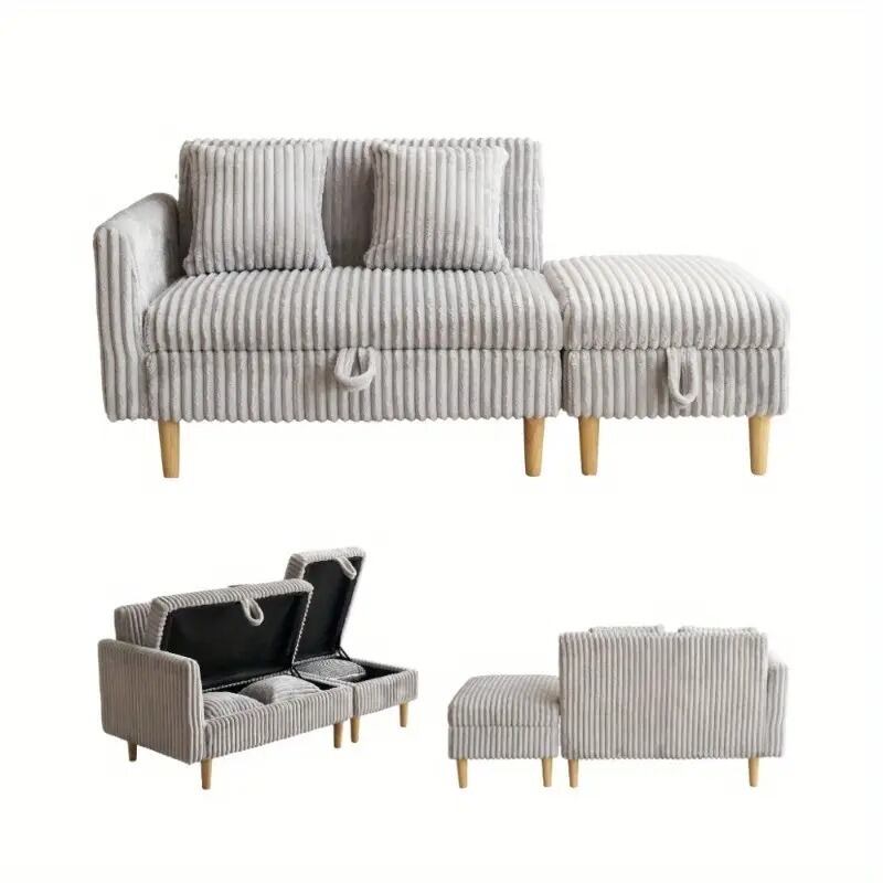 ソファ ソファベッド 3人掛け 収納付き オットマン付き ふわふわ 可愛い おしゃれ シンプル ナチュラル レトロ クラシック スタイリッシュ 高級感 インテリア 北欧 リビング 新生活 カフェ 家具 グレー