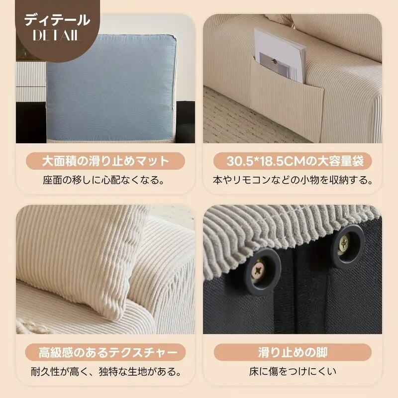 ポケット付きでリモコンや雑誌の収納にも便利。