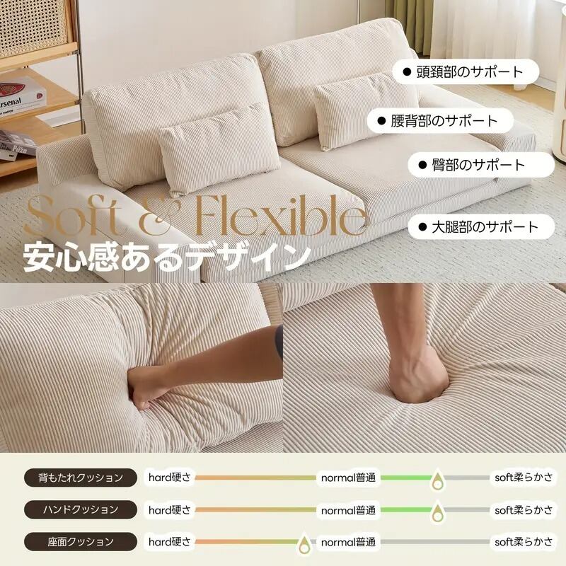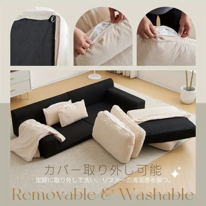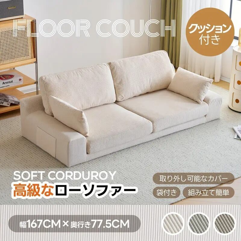 ソファ ダブル ソファベッド ロータイプ クッション付き シンプル おしゃれ モダン インテリア 北欧 無地 洗えるカバー 滑り止め ポケット付き グレー ブラウングレー キャメル ベージュ 167×77.5cm