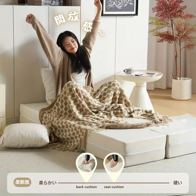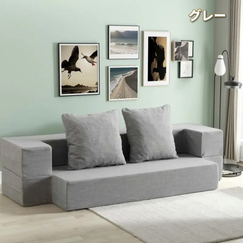 ソファ ロータイプ ダブル ソファベッド クッション付き シンプル おしゃれ モダン インテリア 北欧 洗えるカバー 高反発 150N 組立不要 ベージュ グレー カーキ 綿帆布 ウレタン 170×65×40cm