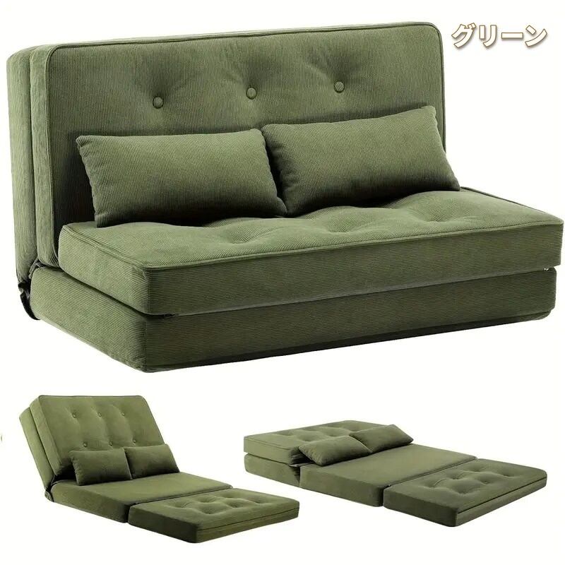 ソファ ダブル ソファベッド ロータイプ クッション付き シンプル おしゃれ モダン インテリア 北欧 3WAY カウチ 6段階リクライニング 洗えるカバー ベージュ グレー ブラック ブルー グリーン 90×53×57cm