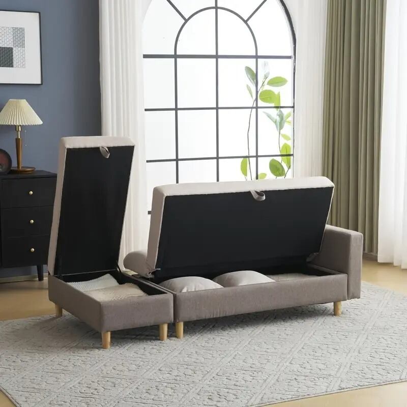 ソファ 三人掛け ソファベッド セパレート 収納付き シンプル おしゃれ モダン インテリア 北欧 多機能 レイアウト自由 クッション付き ツートンカラー ブラウン グレー 170×87×41cm