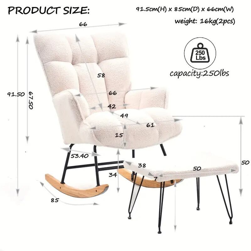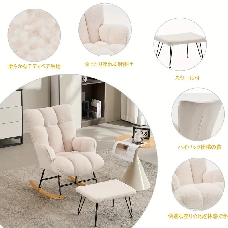 ソファ ロッキングチェア 一人掛け ふわふわ オットマン付き 可愛い シンプル モダン おしゃれ インテリア 北欧 ハイバック クッション性 木製脚 ピンク グレー ブラック ホワイト 66×82×91.5cm | Calm+(カームプラス) - 北欧風ナチュラルインテリア・モダン家具専門店