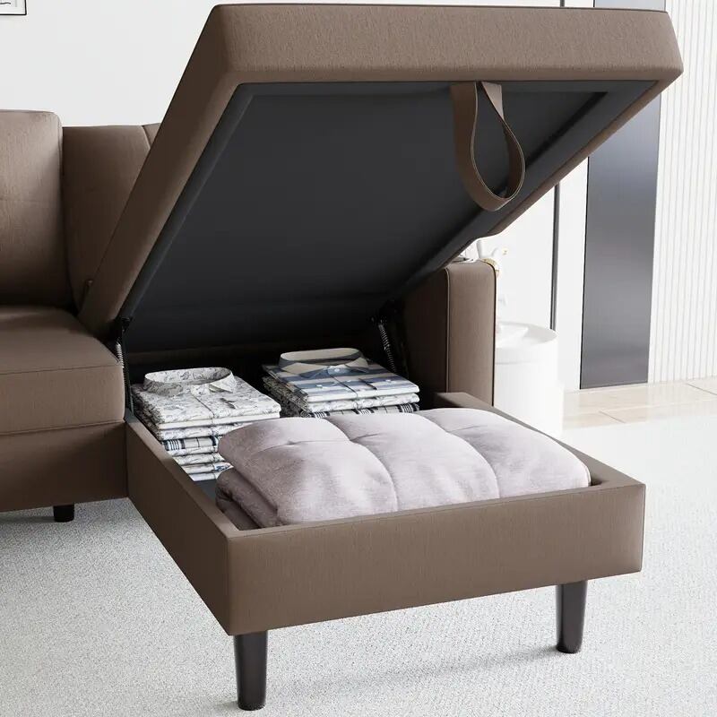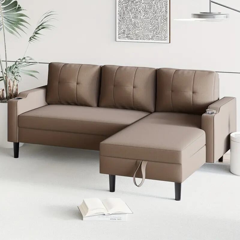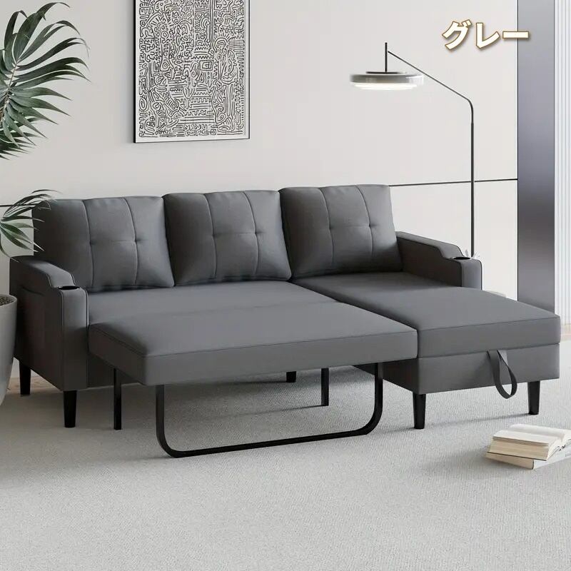 ソファ 三人掛け カウチソファ L字型 収納付き シンプル モダン おしゃれ インテリア 北欧 ドリンクホルダー付き グレー ブラウン 189.9×124.99×80.01cm