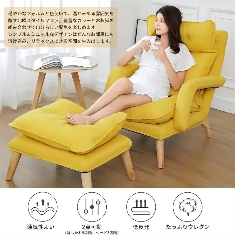 オットマン付きで、足を伸ばしてゆったりとくつろげるのが魅力です。