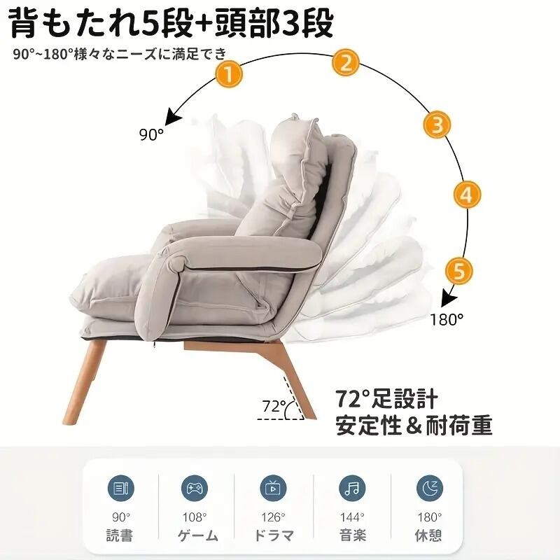 ソファ 一人掛け 1人用 ソファベッド オットマン付き シンプル おしゃれ インテリア 北欧 リクライニング ハイバック アームレスト グレー グリーン ブルー 72×100cm | Calm+(カームプラス) - 北欧風ナチュラルインテリア・モダン家具専門店