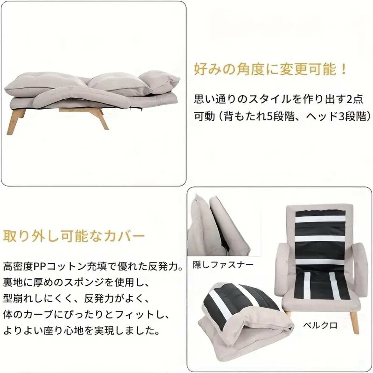 素材にはポリエステル、ウレタンフォーム、スチールパイプ、ラバーウッドを使用し、耐久性と快適さを兼ね備えています。