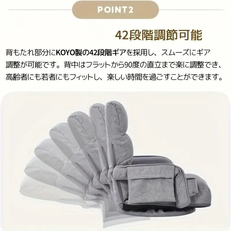 リクライニング機能は42段階調節可能で、あなたの好みに合わせたリラックス空間を提供します。