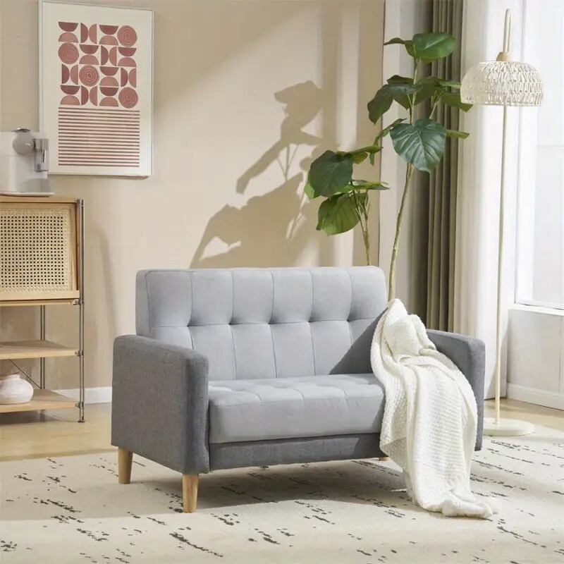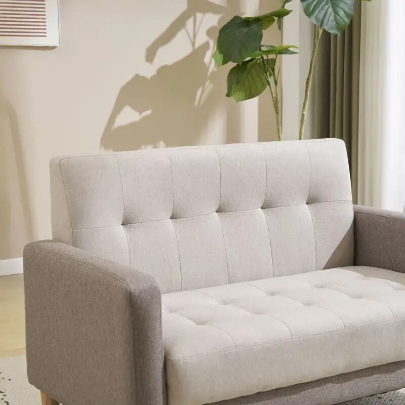 この二人掛けソファは、ツートンカラーのベルベット調生地が魅力的で、シンプルながらもおしゃれなデザインが特徴です。