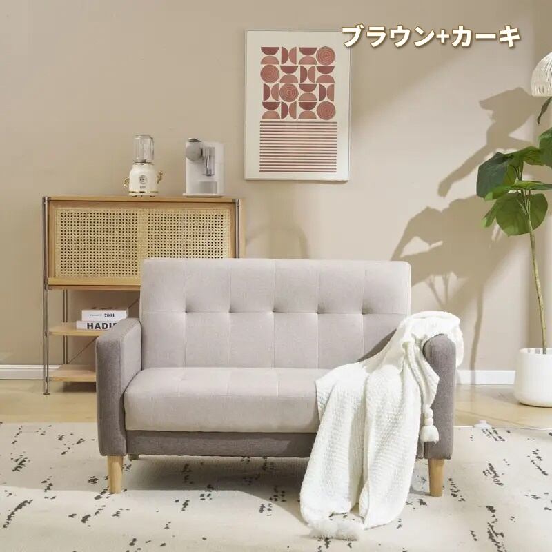 ソファ 二人掛け ツートンカラー ベルベット調 アームレスト付き シンプル おしゃれ モダン インテリア 北欧 ロボット掃除機対応 脚取り外し可 ロータイプ ブラウン+カーキ ダークグレー+ライトグレー 105cm | Calm+(カームプラス) - 北欧風ナチュラルインテリア・モダン家具専門店