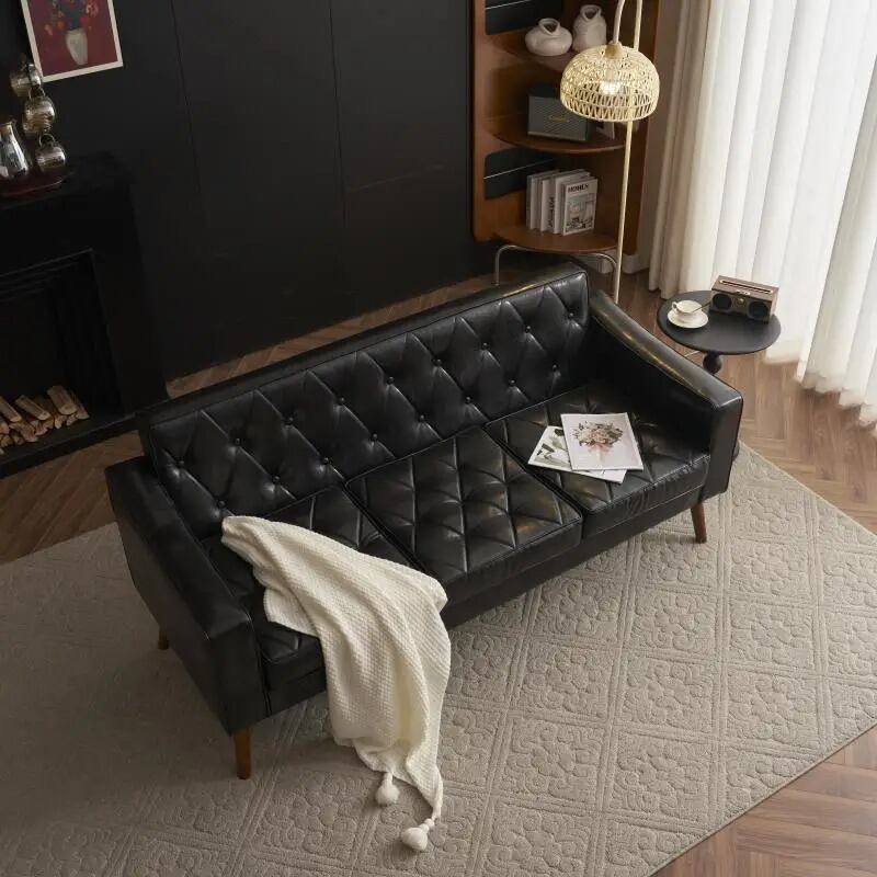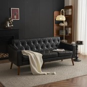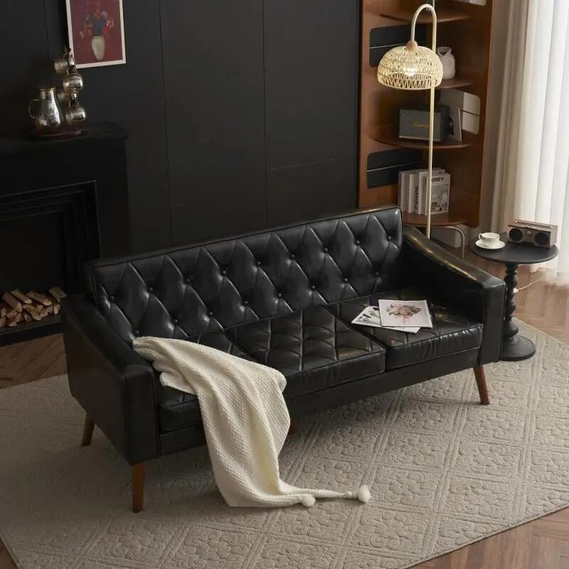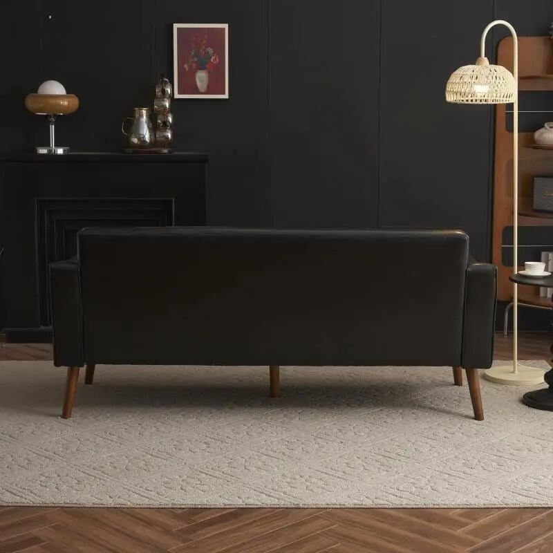 ソファ 三人掛け 3人用 フェイクレザー ヴィンテージ風 かっこいい おしゃれ インテリア 北欧 アームレスト付き 木目調脚 ブラック 合皮 174×70×77cm