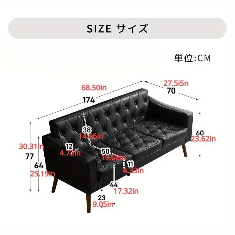 サイズは174×70×77cmで、広々とした座り心地を提供します。