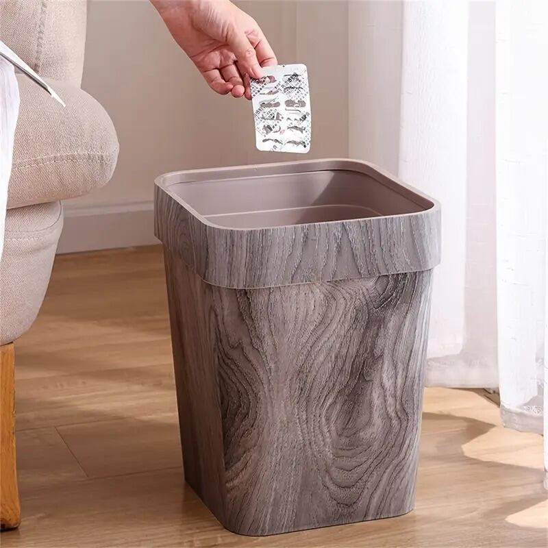 ゴミ箱 ダストボックス 木目調 蓋なし 四角 モダン おしゃれ シンプル インテリア 北欧 袋が見えない 隠せる スクエア 省スペース グレー プラスチック 14L 24×30cm | Calm+(カームプラス) - 北欧風ナチュラルインテリア・モダン家具専門店
