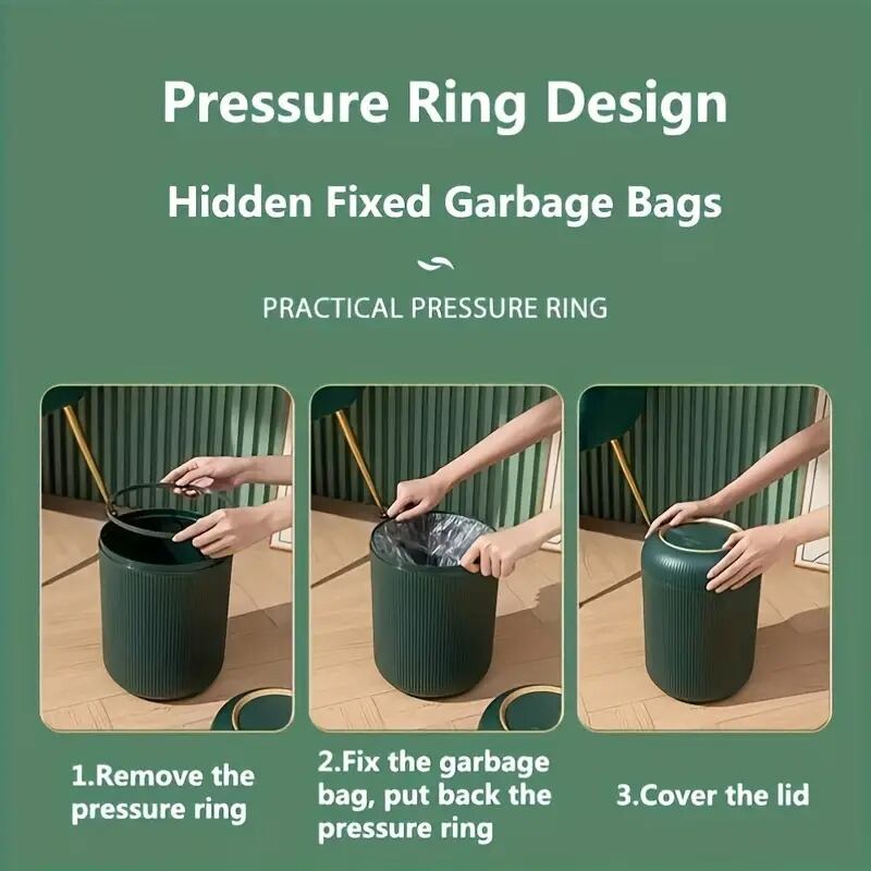ゴミ箱 ダストボックス 円柱型 蓋付き プッシュ式 モダン おしゃれ シンプル インテリア 北欧 袋が見えない 隠せる ホワイト ゴールドアクセント プラスチック 9.5L 22.5×31.5cm | Calm+(カームプラス) - 北欧風ナチュラルインテリア・モダン家具専門店