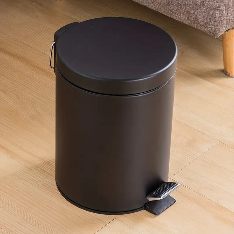 この円柱型のゴミ箱は、ペダル開閉式の蓋付きデザインで、使いやすさと美しさを兼ね備えています。