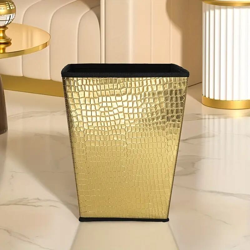ゴミ箱 ダストボックス クロコダイル風 型押し 蓋なし モダン おしゃれ インテリア 北欧 四角 スクエア ゴールド シルバー PUレザー 13L 24×30cm | Calm+(カームプラス) - 北欧風ナチュラルインテリア・モダン家具専門店