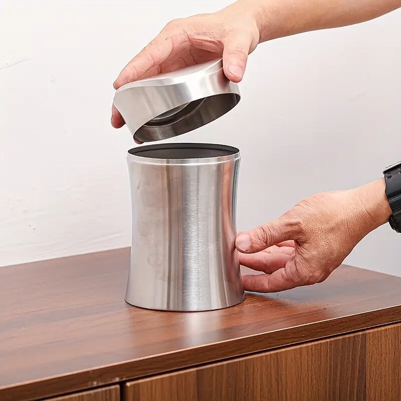 ゴミ箱 ダストボックス 卓上 ミニサイズ 蓋付き モダン シンプル おしゃれ 美しい インテリア 北欧 スライド開閉式 シェイプデザイン シルバー ゴールド ステンレス 金属製 1.5L 12×18.5cm | Calm+(カームプラス) - 北欧風ナチュラルインテリア・モダン家具専門店