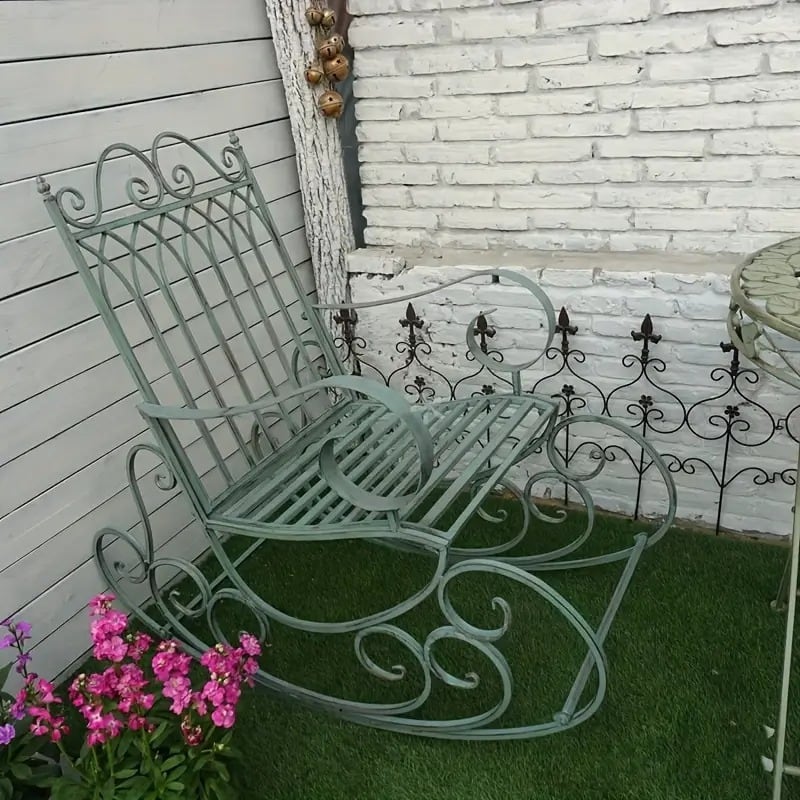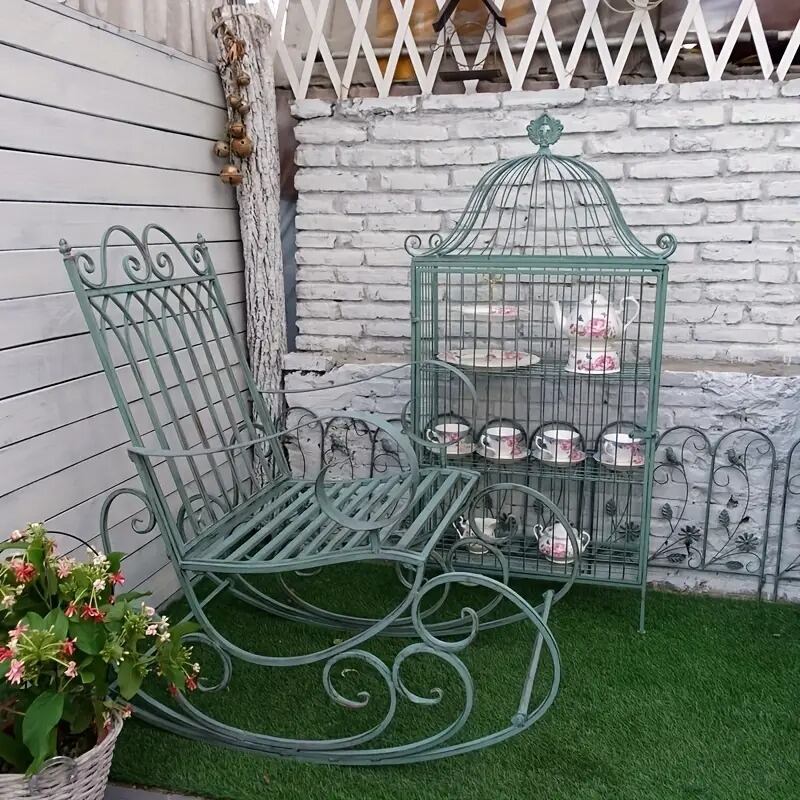 ガーデンチェア ロッキングチェア 椅子 ヴィンテージ風 アンティーク調 おしゃれ エレガント インテリア 北欧 庭 屋外 アイアン ヨーロッパ風 ホワイト グリーン 鉄製 53×100×99cm | Calm+(カームプラス) - 北欧風ナチュラルインテリア・モダン家具専門店