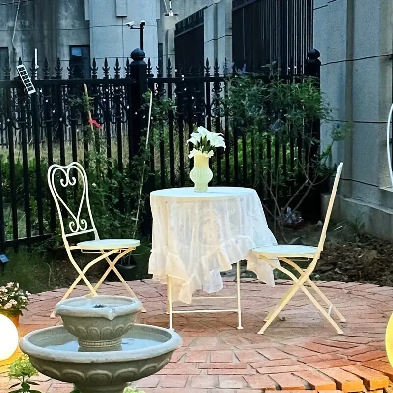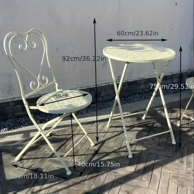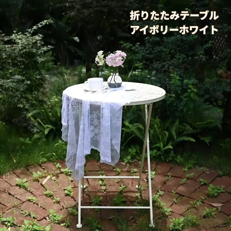 ガーデンチェア テーブル 折りたたみ アイアン アンティーク調 おしゃれ エレガント 可愛い インテリア 北欧 庭 屋外 ヨーロッパ風 ラウンド 丸型 椅子 背もたれ付き 選べる グリーン アイボリーホワイト 金属製 60×75cm 40×46×92cm | Calm+(カームプラス) - 北欧風ナチュラルインテリア・モダン家具専門店