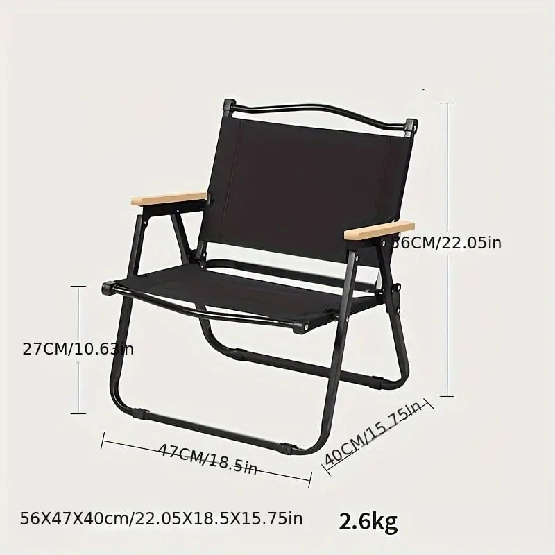 ガーデンチェア 折りたたみ椅子 アウトドア用 オックスフォード生地 背もたれ付き シンプル おしゃれ ナチュラル インテリア 北欧 庭 屋外 キャンプ 釣り ピクニック 軽量 持ち運び 肘掛け付き ブラック カーキ 47×40×56cm | Calm+(カームプラス) - 北欧風ナチュラルインテリア・モダン家具専門店