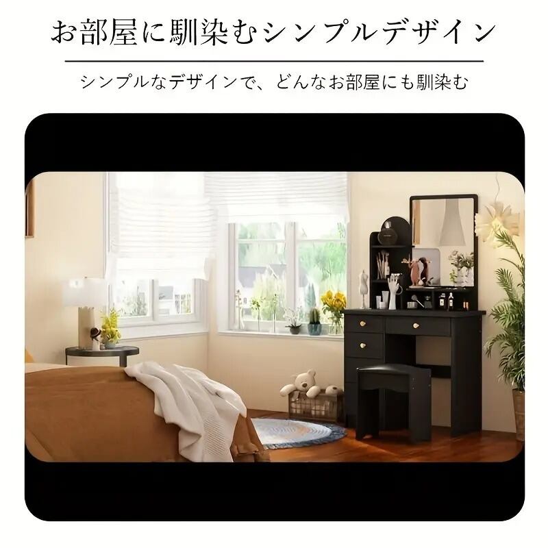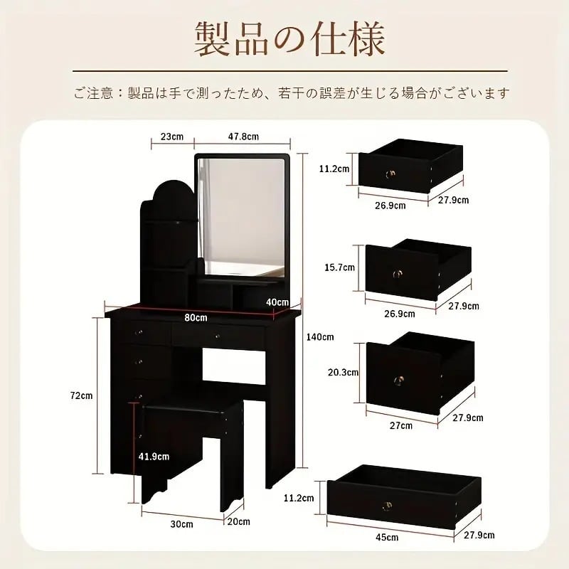 ドレッサー セット コンパクトミラー 大容量収納 4段引き出し スツール付き スタイリッシュ おしゃれ シンプル モダン 高級感 クラシック インテリア 北欧 バニティスタンド 木製 ホワイト ブラック 80×40×140cm スツール30×20×41.9cm | Calm+(カームプラス) - 北欧風ナチュラルインテリア・モダン家具専門店