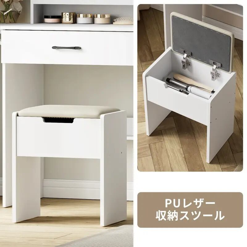 ドレッサー コンパクト 2点セット 3色LEDライト アクトレスミラー プリンセス風 おしゃれ かわいい シンプル 高級感 アンティーク風 インテリア 北欧 スツール付き ヘアドライヤーホルダー 折りたたみサイドボード 木製 ブラック ホワイト ピンク | Calm+(カームプラス) - 北欧風ナチュラルインテリア・モダン家具専門店