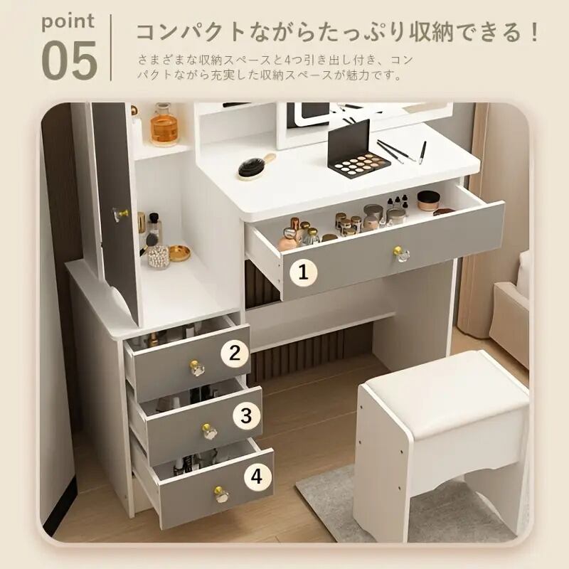 幅93cmのコンパクトサイズながら、大容量収納で化粧品やアクセサリーをすっきり整理。