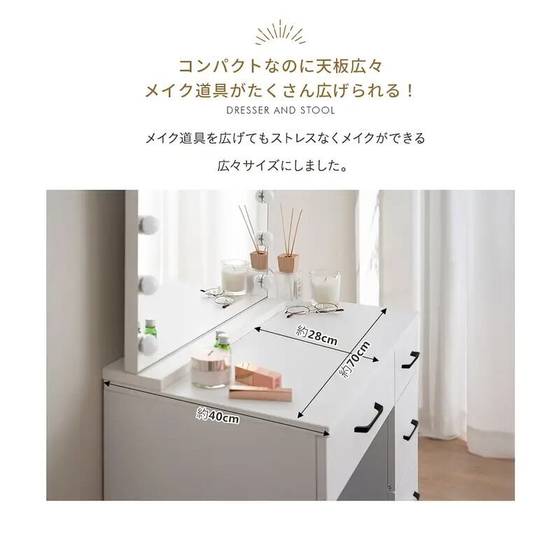 おしゃれでかわいいスツールもセットになっており、メイク時間をより快適に。