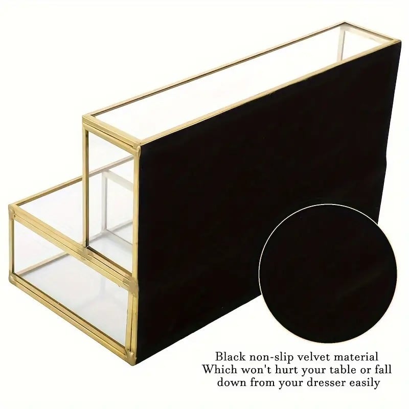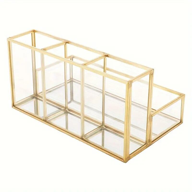 メイクスタンド コスメボックス メタルガラス クリア おしゃれ かわいい シンプル 高級感 モダン ナチュラル クラシック インテリア 北欧 ビンテージ風 メイクブラシ 香水 ネイル リップ ベッドルーム バスルーム トイレ ゴールド 20×14×10 | Calm+(カームプラス) - 北欧風ナチュラルインテリア・モダン家具専門店