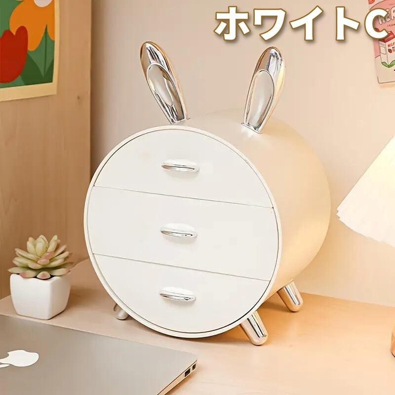 メイクスタンド コスメボックス 3段 うさぎ うさ耳 おしゃれ かわいい シンプル 高級感 モダン ナチュラル クラシック インテリア 北欧 収納ボックス ベッドルーム バスルーム 玄関 リビング 新生活 パウダールーム ホワイト カラフル 31×18cm | Calm+(カームプラス) - 北欧風ナチュラルインテリア・モダン家具専門店