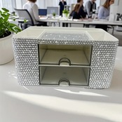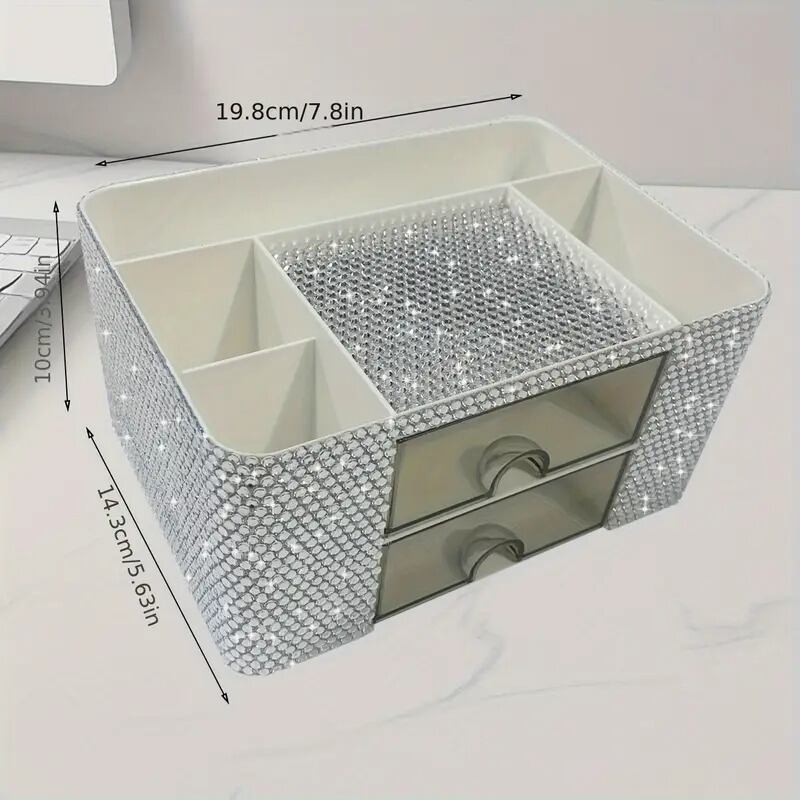 メイクスタンド コスメボックス キラキラ 2段 デスクトップ おしゃれ かわいい シンプル 高級感 モダン ナチュラル クラシック インテリア 北欧 化粧品 プレゼント デコレーション オフィス 新生活 パウダールーム ホワイト 19.8×14.3×10 | Calm+(カームプラス) - 北欧風ナチュラルインテリア・モダン家具専門店