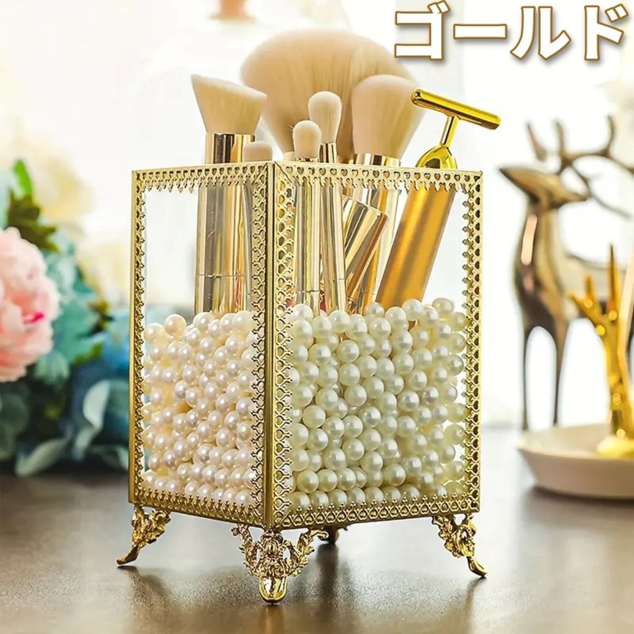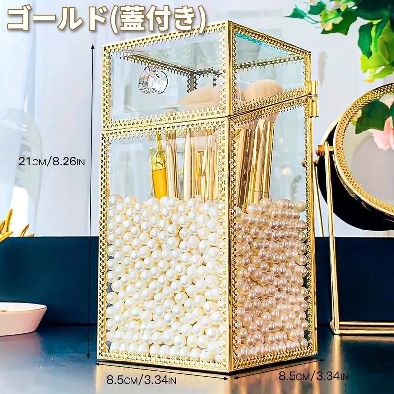 メイクスタンド コスメボックス ガラス パール おしゃれ かわいい シンプル 高級感 モダン ナチュラル クラシック インテリア 北欧 メイクブラシホルダー バスルーム 寝室 ギフト ゴールド 7.5×7.5×11.5cm 8.5×8.5×21cm | Calm+(カームプラス) - 北欧風ナチュラルインテリア・モダン家具専門店