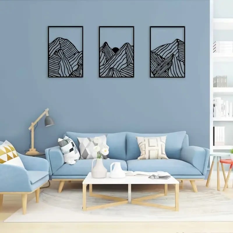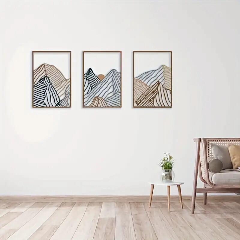モダンでおしゃれなウォールアート3点セットは、北欧風の抽象的なマウンテン風景を切り絵風にデザインしました。