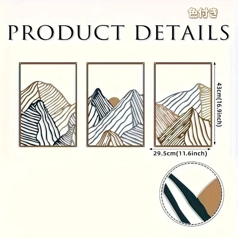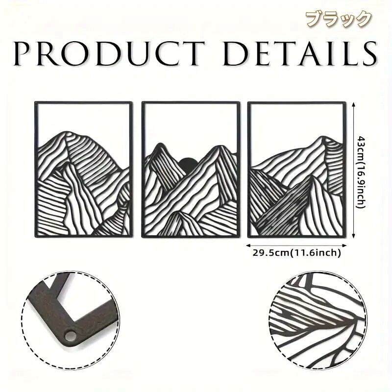 ウォールアート 3点セット マウンテン 風景 メタル おしゃれ モダン 抽象 可愛い インテリア 北欧 山 日の出 壁飾り 長方形 切り絵風 モノトーン ブラック 色付き 金属製 29.5×43cm | Calm+(カームプラス) - 北欧風ナチュラルインテリア・モダン家具専門店