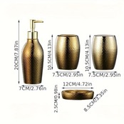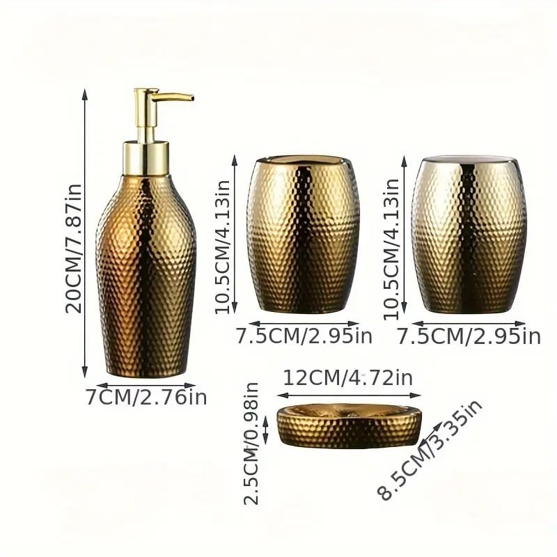 ソープディッシュ ソープホルダー 洗面用具 4点セット ゴールド おしゃれ モダン エレガント インテリア 北欧 石鹸置き ディスペンサー 歯ブラシスタンド コップ メタリック 12×8.5×2.5cm | Calm+(カームプラス) - 北欧風ナチュラルインテリア・モダン家具専門店