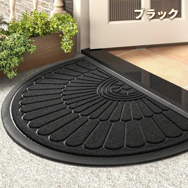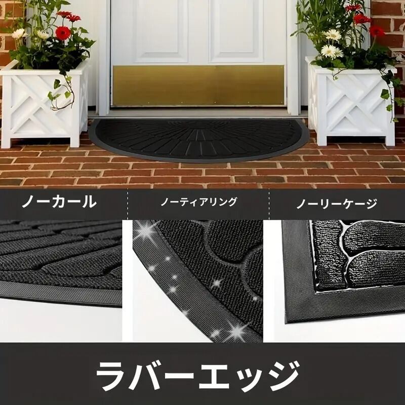 屋外ドアマット 玄関マット ラバー 半円 絨毯 おしゃれ シンプル モダン インテリア 北欧 泥落とし 吸水 水切り 滑り止め 室内 エントランス 手洗い可 ブラック グレー ブラウン ポリプロピレン ゴム 43×75cm | Calm+(カームプラス) - 北欧風ナチュラルインテリア・モダン家具専門店