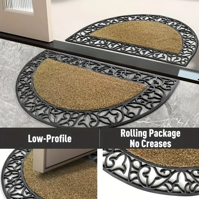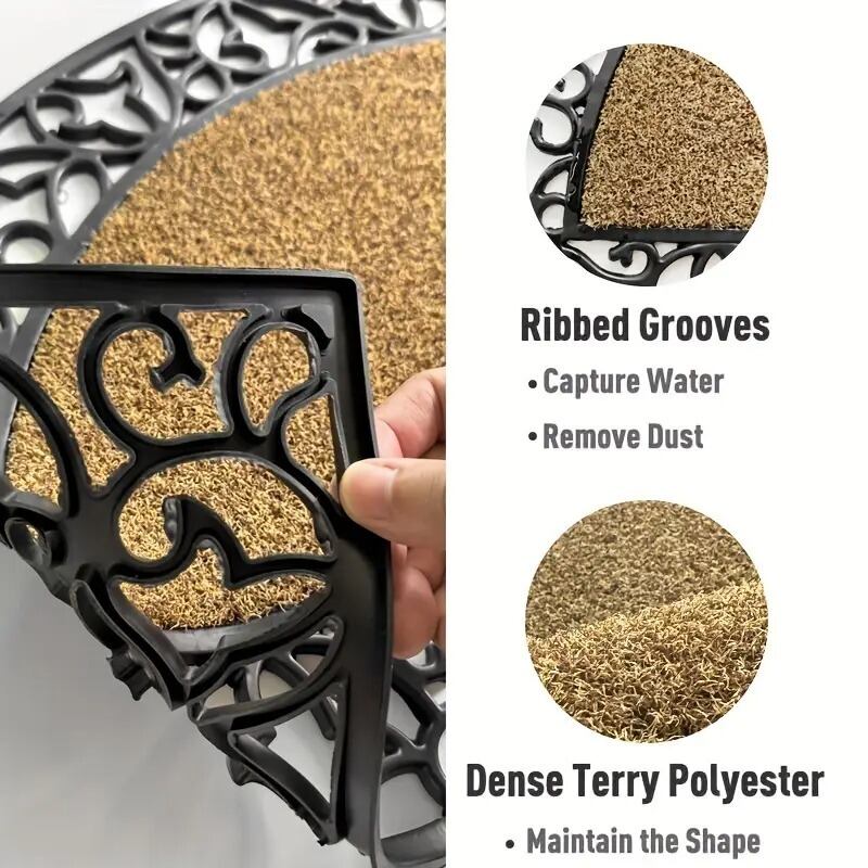 玄関を彩るエレガントなアクセント、半円型の屋外ドアマット。